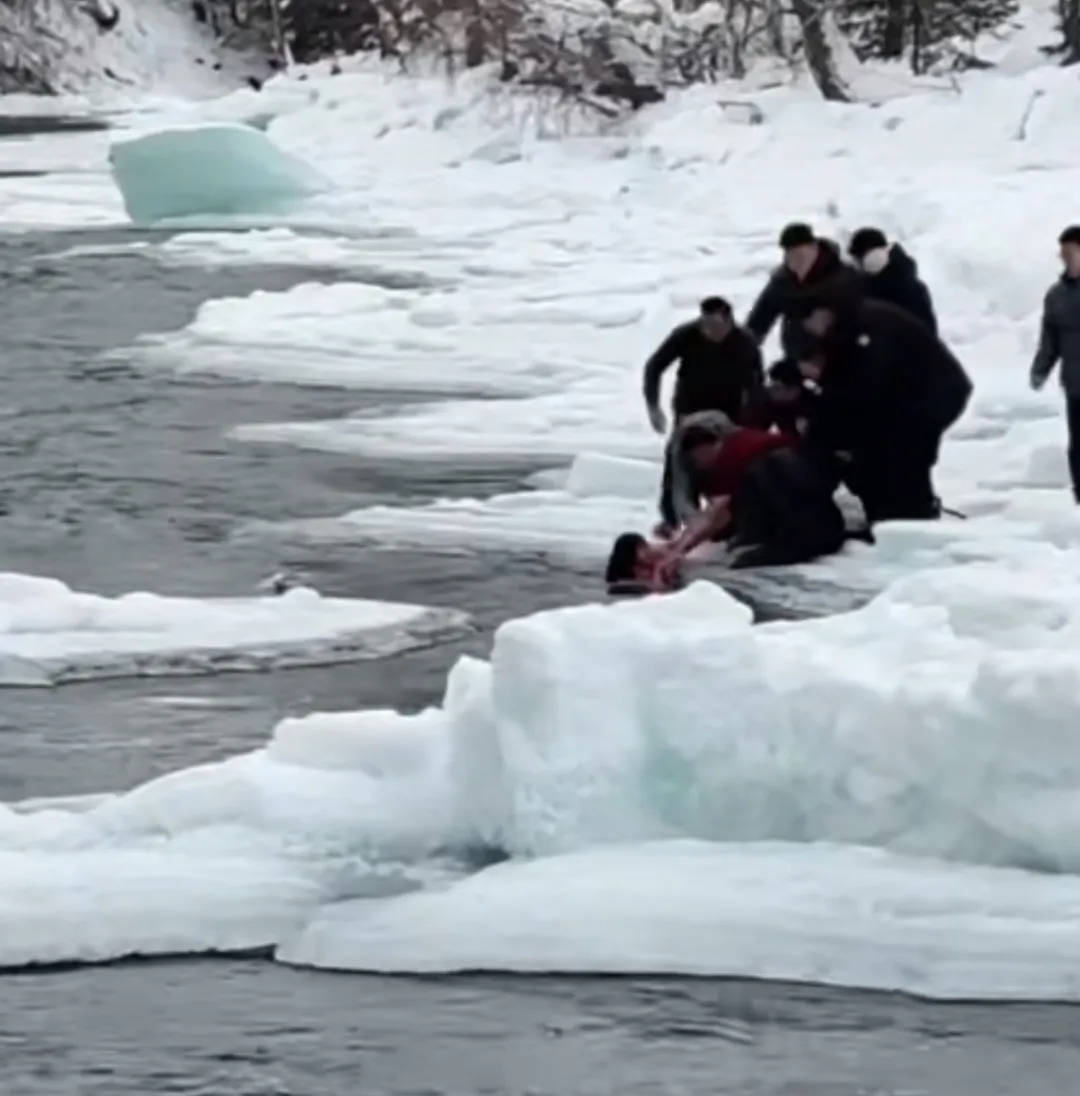 2月10日,新疆喀纳斯景区,一双母女掉入冰河,险被冲走,临了被搭客协力救上了岸。网传视频中,母女落河后,母亲被冲到了对岸,小女孩被水流带走了一段距离,临了漂到岸边。岸上的搭客脱下衣裳,让小女孩拉住,世东谈主协力将小女孩拽上岸。