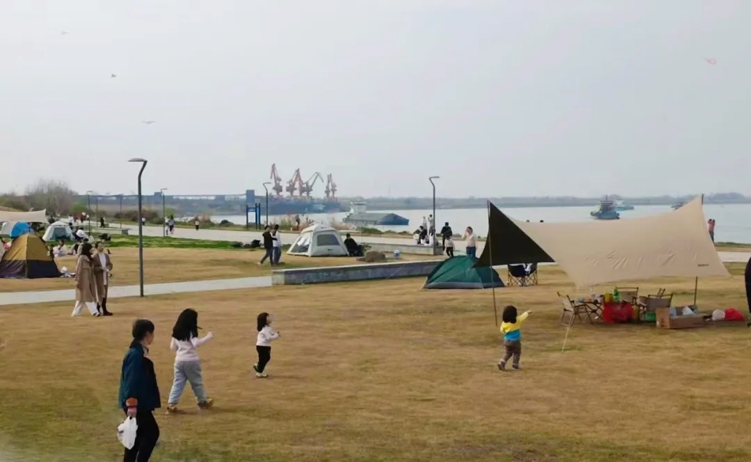 “支一顶帐篷,揽江风入怀。煮一壶花茶,香气混着涛声,飘向远处。”樊口武昌鱼公园为露营者留白,一位市民在博文中写说念。