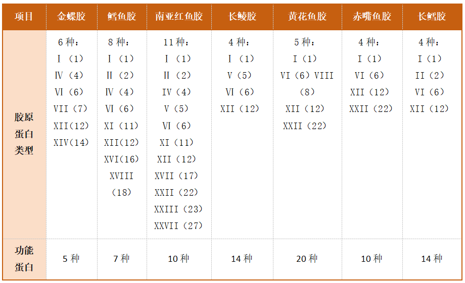不同品种花胶活性卵白对比。(开端:中国渔业协会鱼胶(花胶)分会)