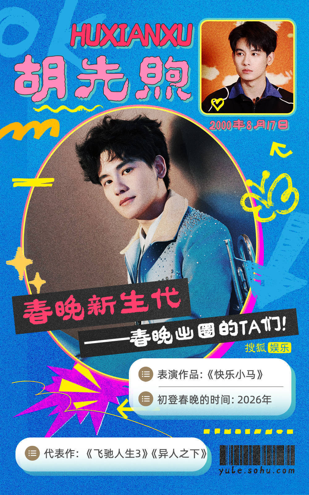 胡先煦在2026年央视马年春晚上,搭档王安宇、范丞丞、黄子弘凡沿路完成了歌曲《欢乐小马》。穿戴蓝色恬逸装的他玄虚立体,齐全展现了新春的喜庆氛围。在舞台饰演时他尽全力跳舞,与黄子弘凡沿路在音乐中扭捏,被网友辱弄为“真东谈主版线条小狗”,相干话题火速传播,超有人命力的水灵简直感让胡先煦再次受到了不雅众们的怜爱,他也成为了马年春晚超有缅思点的一员。